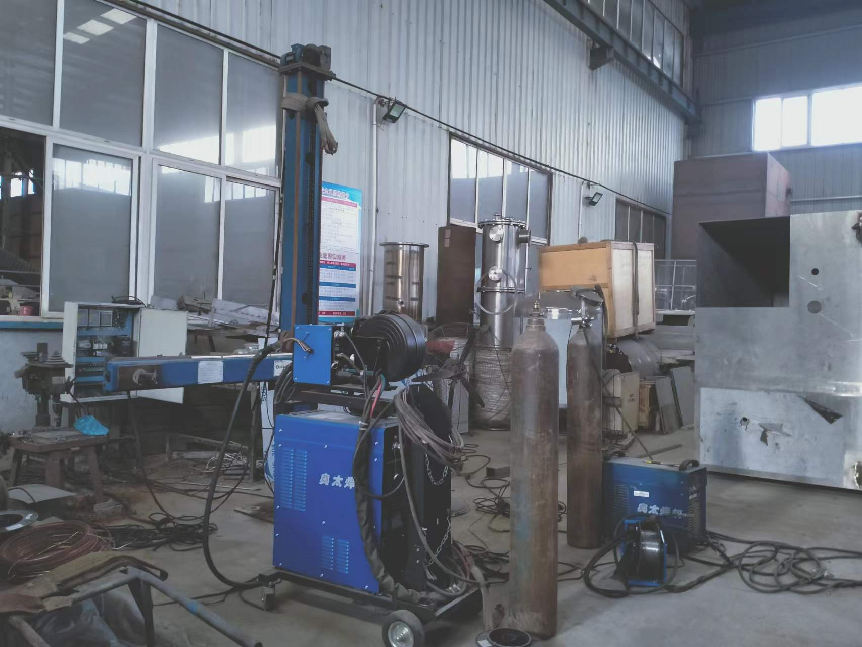 焊縫、縱縫自動焊機(jī)、等離子切割機(jī)、卷板機(jī)、封頭拋光機(jī)、滾筒拋光機(jī)等多種現(xiàn)代化智能生產(chǎn)設(shè)備。